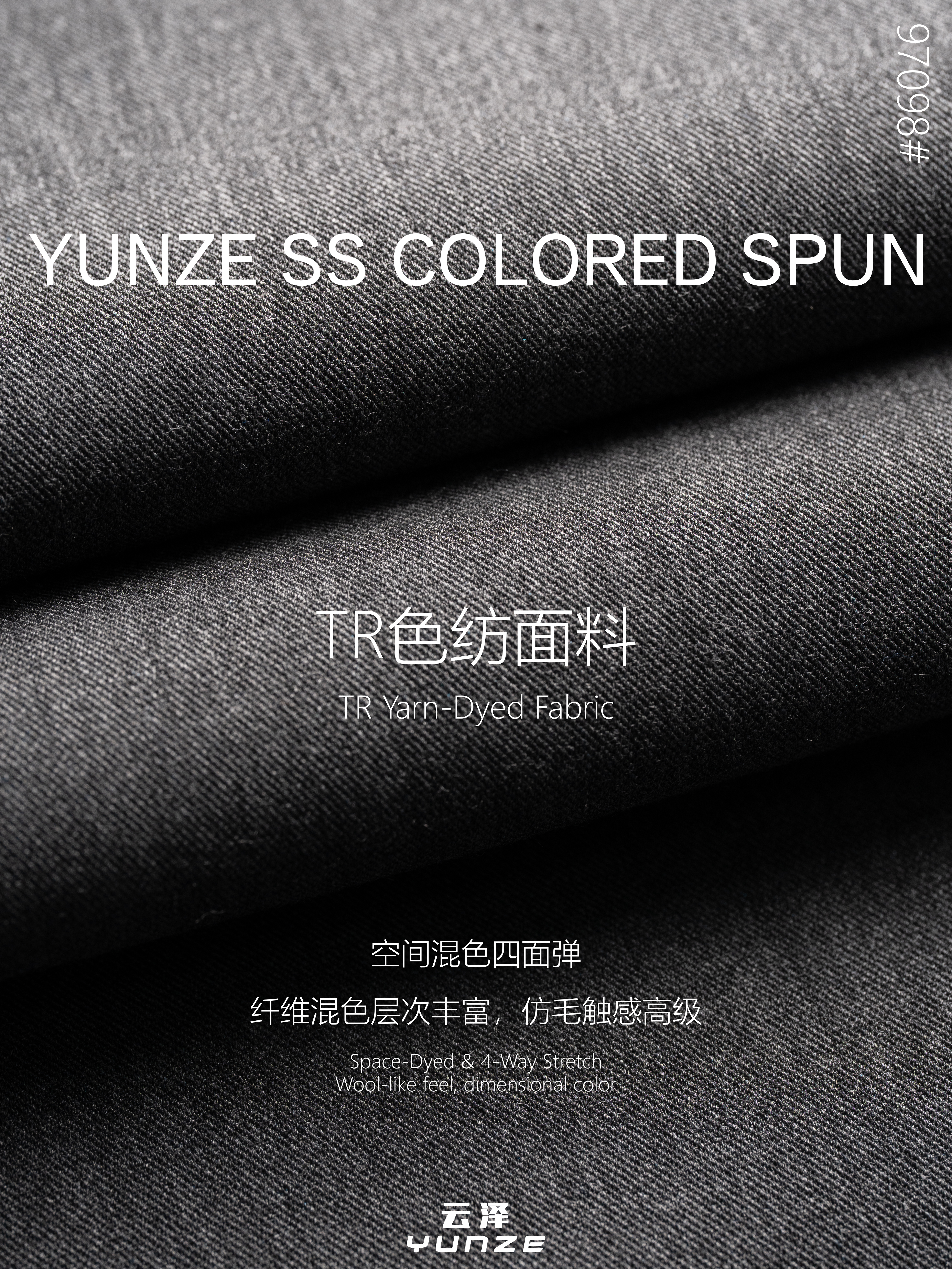 云泽色纺产品线的明星产品,包括同系列的三款常规克重:90317(340g)、96542(270g)、97098(200g),颜色持续更新中。采用成布纤维混色风格,呈现独特的“空间混合”效果,版面层次变化更加明显。采用无染色助剂残留的“原液着色”技术,对皮肤更友好,永不掉色。360度弹力,Q弹有骨感。利用欧洲仿毛技术,触感近似毛料,成衣更具高级感。多年技术沉淀,确保缩率和抗起球性能更加稳定。常年储备100万米现货,江苏浙江广东三仓储同步物流。保您产能无忧。